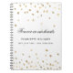 A stylish white background with faux gold glitter dust. With the text: Forever in our hearts, written with an elegant hand lettered style script. Add a name and dates.