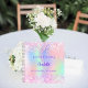 A guest book for a Quinceañera, 15th birthday party. A trendy holographic coloured background in pink, purple, mint green. Decorated with confetti in pink. Personalise and add a name, the name is written with a girly modern hand lettered style script