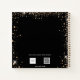 For a Quinceañera, 15th birthday party. A black background with faux gold glitter dust, a golden dress and black roses, florals. The name is written with a modern hand lettered style script. Personalise and add a name and date.
