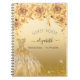 For a Quinceañera, 15th birthday party. A faux gold background with faux glitter dust, a dress and golden roses, florals. The name is written with a modern hand lettered style script. Personalise and add a name and date.