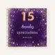 A guestbook for a feminine and glamourous Quinceañera, 15th birthday party. A stylish purple background with faux purple and rose gold sparkles. The purple colour is uneven. Personalise and add your name and a date.