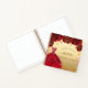 For a Quinceañera, 15th birthday party. A faux gold background with faux glitter dust, a dress and red roses, florals. The name is written with a modern hand lettered style script. Personalize and add a name and date.