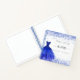 A white background decorated with a royal blue dress and sparkles. Add your name, age, date. The name is written with a trendy script with swashes. To keep the swashes only delete the sample name, leave the spaces or emoji's in front and after the name