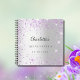 A faux silver metallic looking background decorated with purple, violet faux glitter dust. Personalise and add a name and date.