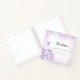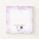A white background decorated with violet, lavender coloured faux glitter/sparkles and a dress. Personalise and add a name and date.
