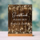 Wood Rustic White Floral String Lights Wedding Guestbook Signing Sign - This elegant brown wood and white Sign, featuring lovely string lights and white floral can be personalised with your Wedding details (the product is not actually made from wood).