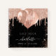 A stylish black background with rose gold faux glitter drips and sparkles. Decorated with purple balloons. Personalise and add a name, age and a date. The name is written with a modern hand lettered style script with swashes. To keep the swashes only delete the sample name, leave the spaces or emoji's in front and after the name.