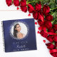 A guest book for a feminine and glamourous Sweet 16, 16th (or any age) birthday party. A stylish navy blue background with faux silver glitter sparkles round the photo. The blue colour is uneven. Add your name, age, date and a photo.
