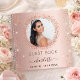 A guest book for a feminine and glamourous Sweet 16, 16th birthday party. A stylish rose gold, blush background with a rose gold photo frame. Add your name, age, date and a photo.
