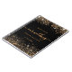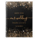 A stylish black background with dark faux gold glitter dust. Personalise and add your names and wedding date.