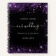 A stylish black background with purple faux sparkles. Personalise and add your names and wedding date.