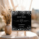 A stylish black background with faux silver glitter dust. Personalise and add your names and wedding date. Mr & mrs written with a heart. White letters.