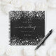 A stylish black background with faux silver glitter dust. Personalise and add your names and wedding date.