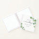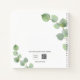 A white background color. Decorated with elegant eucalyptus greenery sprigs. Add your names and a date.