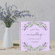 A violet background decorated with lavender flowers and eucalyptus greenery. Personalise and add your names and wedding date.