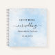 A light blue sky as background with faux silver glitter, sparkles. The blue colour is uneven. Add your names and the wedding date.