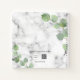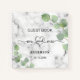 Marble print as background colour. Decorated with elegant eucalyptus greenery sprigs. Mr and Mrs with a heart. Add your names and a date.