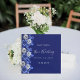 A navy blue background decorated with royal blue and silver looking flowers. Personalise and add your names and wedding date.