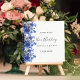 A white background decorated with royal blue and silver looking flowers. Personalise and add your names and wedding date.