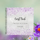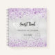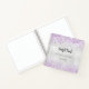 A stylish faux silver looking background with laavender, purple faux glitter and a large butterfly on the front. Personalise and add your names and wedding date.