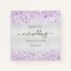 A stylish faux silver looking background with lavender, purple faux glitter dust. Personalize and add your names and wedding date.
