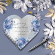 Faux silver looking background decorated with navy blue and light blue florals, flowers, and faux glitter, sparkles. Personalise and your names and the wedding date.