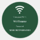 A Wi-Fi symbol. Add your wi-fi name and password for your customers/guests. Emerald green background, white text.