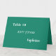 Guest Name Meal Choice Emerald Green Place Card featuring stylish white text on an emerald green background. Please use the online personalisation template to personalise each place card individually before adding the card to the cart, to show the table number for the particular table where the guest is to be sitting, the name of the guest and the meal choice (or dietary restriction) for the guest. (Repeat the personalisation process for each card you wish to purchase, adding the card to the cart individually each time). This printed place card will arrive flat and so will need folding in half before use. (The size before folding is approximately 5" height by 3.5" width, intended to be folded so approximately 2.5" by 3.5" after folding). Once the printed card is folded, the same wording will show on both sides (so as to be visible from both sides of a table). A neatly-personalised place card for a stylish wedding or other special occasion.