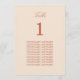 Guest Names Terracotta Script Table Card, easy to personalise in the online personalisation template in order to show the table number for the appropriate table and the guest names for that table. The design copies across to the other side of the card automatically so as to help guests to find their table from either side of the table. Featuring a simple plain minimalist design layout, this stylish table card incorporates space around the text elements to allow for choice of display methods such as hanging or framing the card.