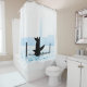 I love this shower curtain! It’s made of durable good quality fabric and the pictures came out perfect!! I ordered this shower curtain because my husband suddenly unexpectedly died 💔😭 and I want his memory to live on with our grandchildren. So, i put pictures of him and the grandchildren on it and every time they use the bathroom, they see him. They love it too!