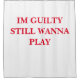 GUILTY SHOWER CURTAIN WHITE RED LETTERS. GUILTY STILL WANNA PLAY. THERE'S TIME FOR WORK. THIERS TIMES FOR PLAY.... IM GUILTY I HAVE BEEN BAD