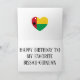 Beautiful design includes happy balloons and ticker tapes with the words "Happy Birthday", covered in the colours of the Guinea-Bissau flag. Design is finished with the heart in the Guinea-Bissau flag colours and the Birthday message. Elements are fully customisable using "Customise it!" feature. This colourful birthday card is the perfect present for your friend from Guinea-Bissau. © CountriesOfTheWorld