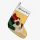 Photograph of a baby Guinea Pig laying next to a red bow and stocking, printed on a Christmas Stocking. - Delete the text and then add your own text.