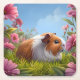 Guinea Pig's Pink Flower Paradise Square Paper Coaster