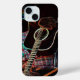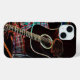 Guitar 1 - Photograph of a guitar player heavily altered in post production with lights and effects to create a bright and dynamic artwork.