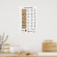 The Guitar Chord Chart and Practice poster includes the seven basic guitar chord fingers for the seven major chords, A, B, C, D, E, F, and G. Fingerings for each chord are shown in 3 variations, major, minor, and 7th.