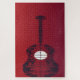 Beautiful evening on a dock with a music theme. Red sky with moon inside guitar.