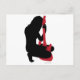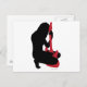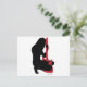 Silhouette of a girl with a guitar. Girl is in black and guitar is in red.
