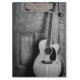 Featuring a black and white photo of a simple guitar leaning against a closed wooden door. This graphic is the perfect piece for any music lover, especially guitar players.