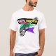 Retro illustration of guitar with customisable lettering (Superposition of the same text to create a drop shadow). In superpoistion of the guitar two coloured triangular shapes with the style of the 80s revisiting the 50s. Customisable Shirt. Matching products:
