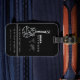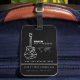Elegant black bag-tag with a guitar, templates for name and custom lines of text... to help identify the baggage of a stylish guitarman when travelling for shows around the world