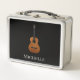 Black and White musical monogram lunch box with a unique guitar image. With white customisable lettering, you can add your own name. A great item for your child to enjoy their lunch at school or rehearsal.