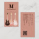 The perfect professional business card design for guitarists, musicians, entertainers and music teachers complete with QR code template. Semi acoustic guitars in rustic country style on a clay background with personalised monogram, name, details and QR code. Any professional guitarist or musician will tell you that you can never have too many guitars, this cool guitar collection celebrates that fact. Original artwork by artist Catherine Sweetman