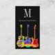 This vibrant business card features psychedelic acoustic, semi-acoustic, and electric guitars in a dazzling array of colours against a striking black background. Complete with a personalised monogram, your name, contact details in stylish typography and a convenient website QR code, all rendered in stylish typography, this card is the perfect cool and colourful introduction for guitar teachers, guitarists, professional musicians, entertainers, and music teachers. Original artwork by artist Catherine Sweetman.