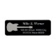 A black address label with a graphic and grey silhoutte of a rock guitar, personalised with your own name and additional information