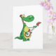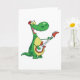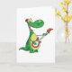 If you have never seen a guitar playing dinosaur then check out this design which features a green dinosaur who is playing the guitar. This dinosaur is very musical and seems to be really enjoying playing the guitar. This guitar playing dinosaur design looks great on these greeting cards