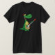 If you have never seen a guitar playing dinosaur then check out this design which features a green dinosaur who is playing the guitar. This dinosaur is very musical and seems to be really enjoying playing the guitar. This guitar playing dinosaur design looks great on this mens t-shirt. Perfect for yourself or as a gift