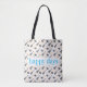 Customisable all-over printed tote bag with cool design with vintage illustrations of guitar and radio + oval white tag for your own message.