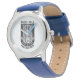 The blue band is the right color for a boys watch.  My grandson loves lacrosse and the watch is easy to put on.  He is ten years old. The lacrosse picture is very clear and I like the blue hands on the watch.  It's good for teaching time.