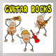 Guitar rocks text with three dancing rocks holding guitars is a funny design for rock musicians, music students and teachers at back to school, birthdays and holidays.